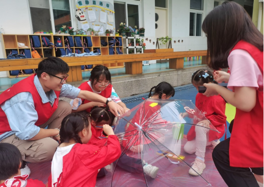 为了丰富幼儿生活,培养幼儿在绘画上的兴趣,弘扬雷锋精神,倡导“奉献、友爱、互助、进步”的志愿者精神,能源与环境学院青年志愿者协会于2022年5月23日下午前往安工大幼儿园,与孩子们一起进行画伞活动。