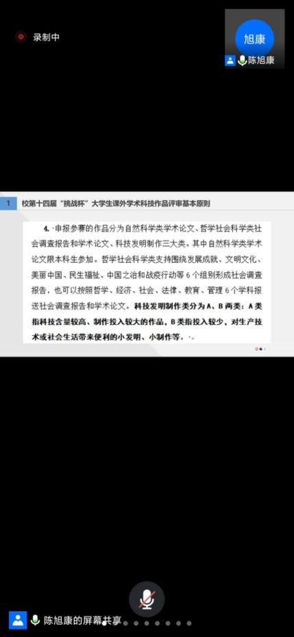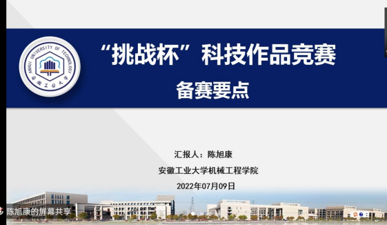 为了使同学们更好地了解和参加“挑战杯”大学生课外学术科技作品竞赛,2022年7月9日上午,能源与环境学院利用腾讯会议形式于线上举行了“挑战杯”大学生课外学术科技作赛启动仪式。启动仪式邀请了参赛经验丰富的陈旭康同学进行参赛经验宣讲培训,能环学院参赛同学、各班班委参加了培训。能环学院副院长盛广宏、院团委书记钱春梅出席启动仪式。