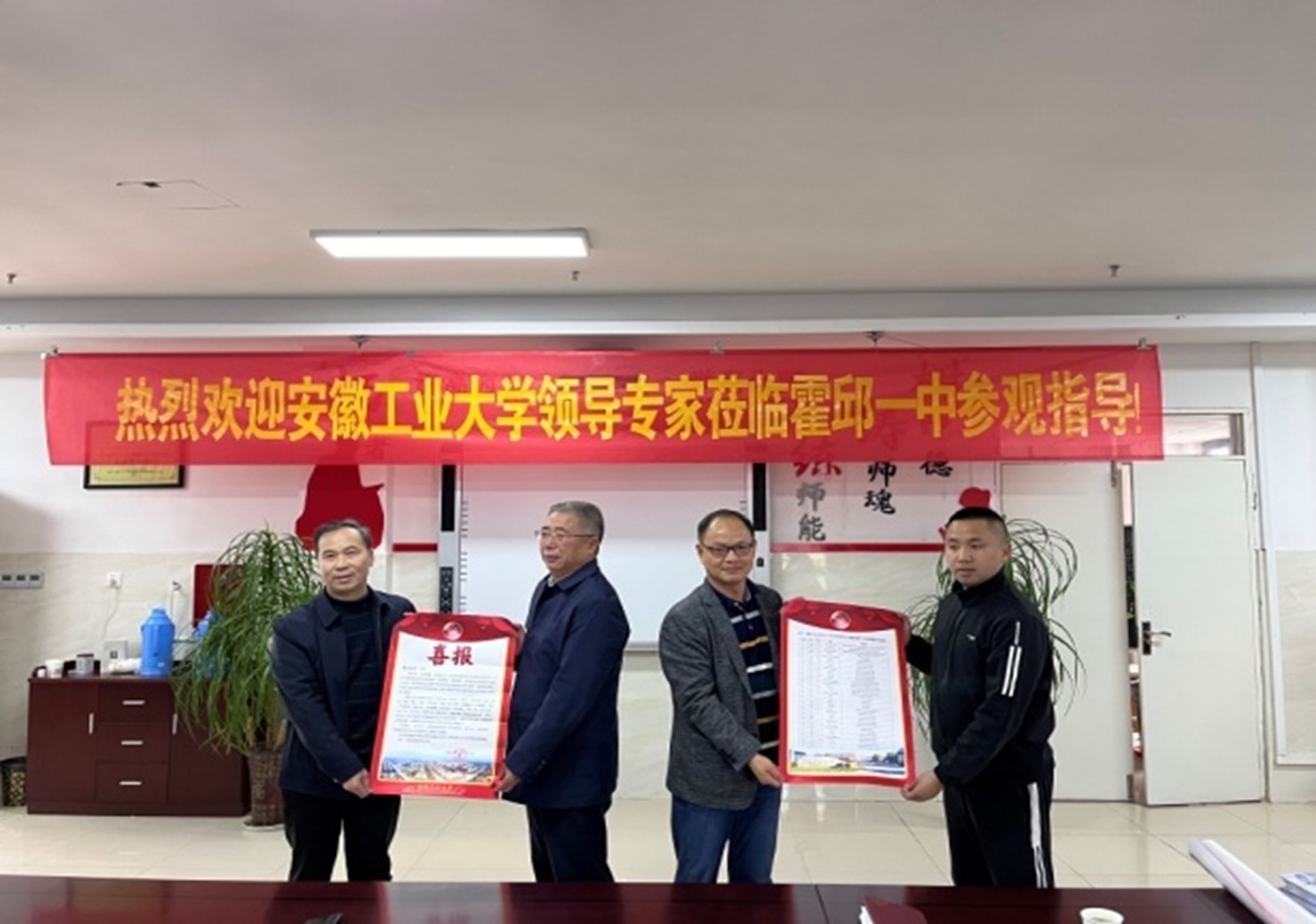 在皖西中学,凤杰首先对皖西中学近年来取得的教育教学成果表示祝贺,对就读在我校的皖西中学学子表示高度认可,并赠送优秀学子喜报。凤杰就安徽工业大学的学科设置、优势专业、学生创新精神培养等方面进行了宣讲,对皖西中学与我校进行招生网络共建进行了探讨。皖西中学校长尤奇志表示希望与我校进行更深层次的交流与合作,愿意在学生中加大对我校的宣传力度,动员更多的考生报考安徽工业大学。
