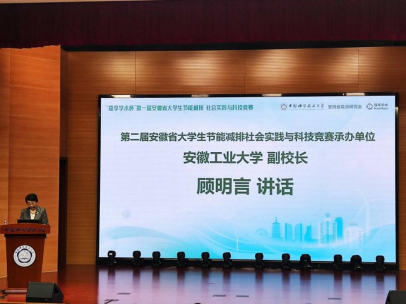闭幕式上,顾明言作为第二届安徽省大学生节能减排社会实践与科技竞赛承办单位代表发言并进行赛旗交接仪式。她表示,该竞赛紧密围绕“双碳”战略目标等国家重大需求,充分体现“节能减排,主动作为”的精髓以及“点亮生命,绽放生命”的价值追求,是覆盖面广、影响力大的全省大学生实践创新的重要载体。顾明言“蔻享学术杯”第一届安徽省大学生节能减排社会实践与科技竞赛的圆满成功表示衷心的祝贺,同时感谢安徽省大学生节能减排社会实践与科技竞赛委员会对安徽工业大学的信任和支持,学校定不负期望,全力以赴筹备第二届安徽省大学生节能减排社会实践与科技竞赛。