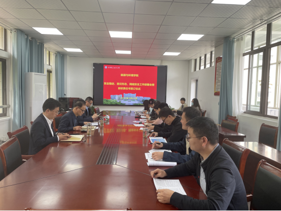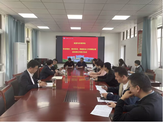 谢文平、钱付平代表学院党政与系党政班子、全体科级干部及全体辅导员签订《能源与环境学院2024年安全稳定、意识形态和网络安全工作目标责任书》。