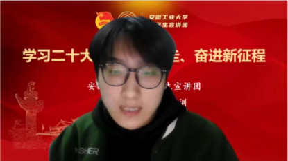 2月27日19时,能源与环境学院于线上开展“学习贯彻落实党的二十大精神”宣讲活动。2019级辅导员钱春梅、能源与环境学院2019级全体学生参加了本次活动。由院宣讲团成员张信哲进行宣讲。本次宣讲主要以争做有理想、敢担当、能吃苦、肯奋斗的新时代好青年为着力点,带领同学们学习了党的二十大精神的核心要义,感悟了党的二十大精神的深刻内涵。