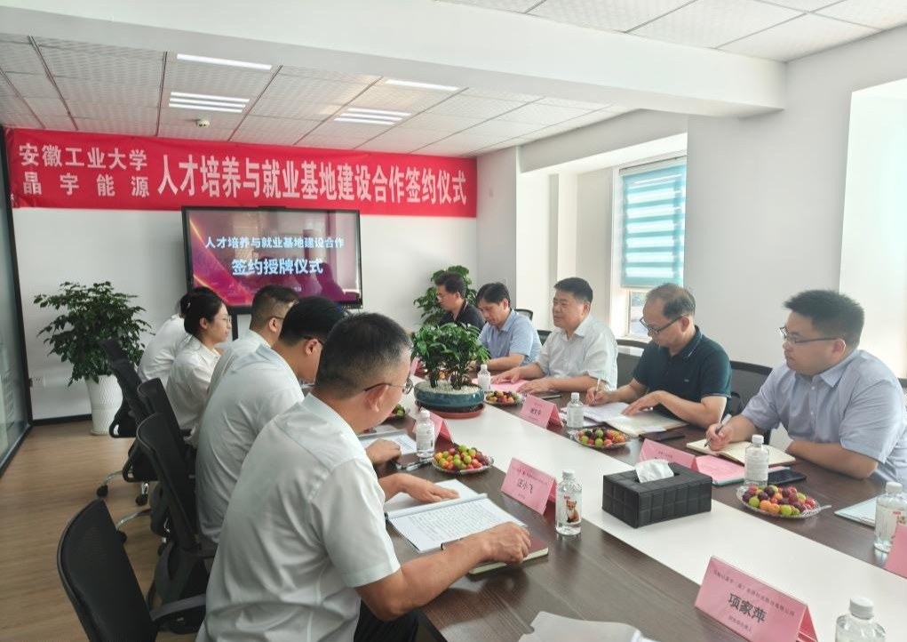 期间,陆林还代表学校授予马鞍山晶宇(盛)能源科技股份有限公司“安徽工业大学就业基地”牌匾,见证了双方签署人才培养与就业基地建设合作协议,现场听取了公司负责人对核心新产品的介绍。