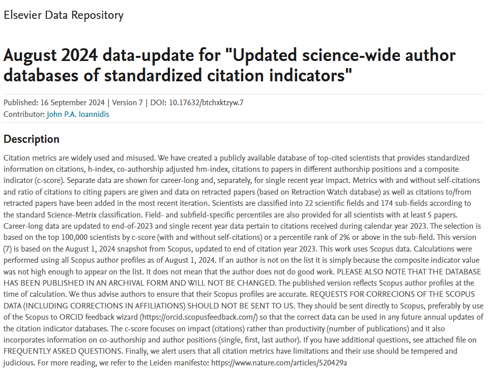 榜单链接:https://elsevier.digitalcommonsdata.com/datasets/btchxktzyw/7
