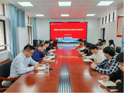 10月17日,能源与环境学院在能源楼325召开研究生安全纪律专题会议。院党委书记谢文平主讲,副院长楚化强、科研秘书李玲、研究生辅导员王稳定及全体研究生主要班干部参加,院党委副书记卫军帅主持会议。
