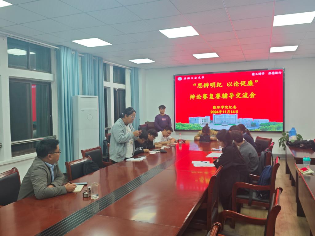 为了进一步加强对学院参加校辩论赛复赛的组织领导和审核把关,并确保选手参加复赛的有序进行,能环学院纪委分别于11月14日和11月16日在能源楼325会议室举办了两场辩论赛复赛辅导交流会。会议由辅导员范浩东主持,院党委副书记、纪委书记卫军帅参加指导。