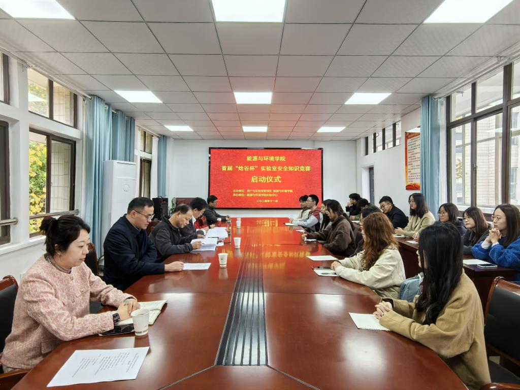 为提升研究生的实验室安全意识,推广实验室安全文化,确保科研活动的顺利进行,2024年11月18日上午,学院在能源楼325会议室隆重举行了第四届实验室安全文化月暨能源与环境学院首届“焓谷杯”实验室安全知识竞赛启动会。学院党委书记谢文平、资产与实验室管理处副处长汪尚兵、学院实验中心主任王双、副主任殷国霞、学院优秀校友、安徽焓谷工程技术有限公司绿色制造部部长邵晓骐以及学院研究生代表出席了本次活动,会议由学院副院长楚化强主持。