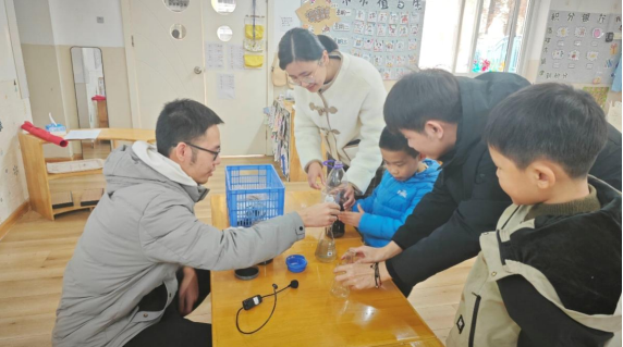 实验结束后,党员们还引导孩子们进行了深入的讨论,鼓励他们思考日常生活中可以采取的节水措施和减少污染的行为。小朋友们积极发言,提出了许多富有创意的想法,如节约用水、垃圾分类等,展现了他们对环保行动的初步认识和积极参与的态度。