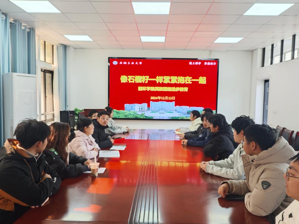 为铸牢中华民族共同体意识,深化新时代学校民族团结进步教育,能源与环境学院于12月13日在能源楼325开展民族团结进步教育座谈会。会议由学院辅导员吴飞、范浩东主持,2024级各民族学生代表参会。
