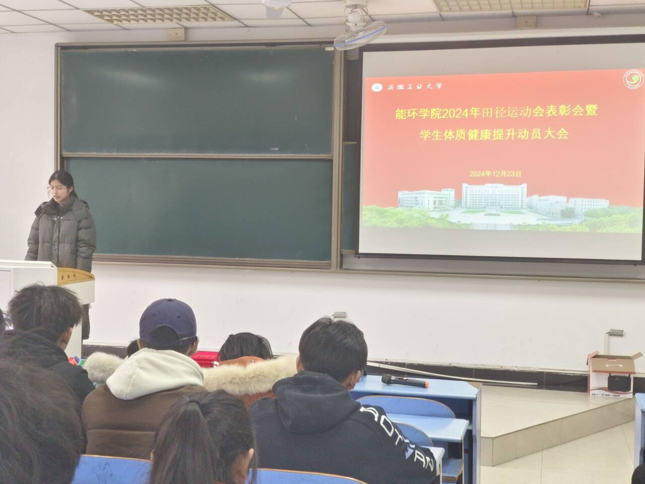 为表彰在田径运动会中表现优异的运动员,动员全院学生积极参与体育锻炼,共同提升体质健康水平,能环学院于12月23日在教三北119召开2024年田径运动会表彰会暨学生体质健康提升动员大会。院党委副书记、副院长卫军帅、各班级班长、团支书、体育委员、学习委员、运动员代表、全体辅导员出席会议,会议由院团委书记沈厚发主持。