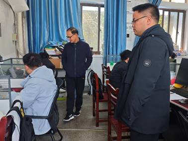 2025年3月6日上午,学院党委书记谢文平、党委副书记卫军帅带队开展研究生工位安全卫生专项检查,重点排查安全隐患、强化安全意识,切实保障研究生科研工作安全有序开展,研究生辅导员和部分研究生代表参与检查。