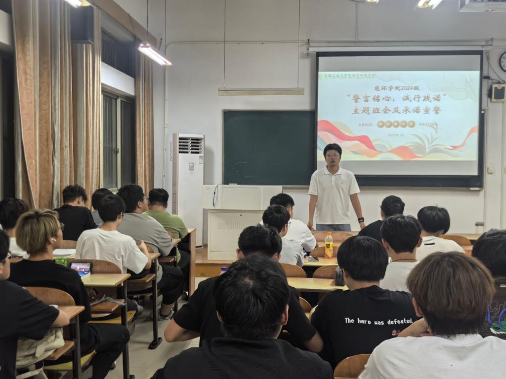 为深化学生对诚信内涵的理解,增强诚信意识,营造班级诚信氛围,凝聚诚信共识,共筑校园诚信文化。能源与环境学院2024级于5月19日晚开展“誓言铭心,诚行践诺”主题班会及承诺宣誓活动。班会由辅导员范浩东主持,2024级全体学生参与。
