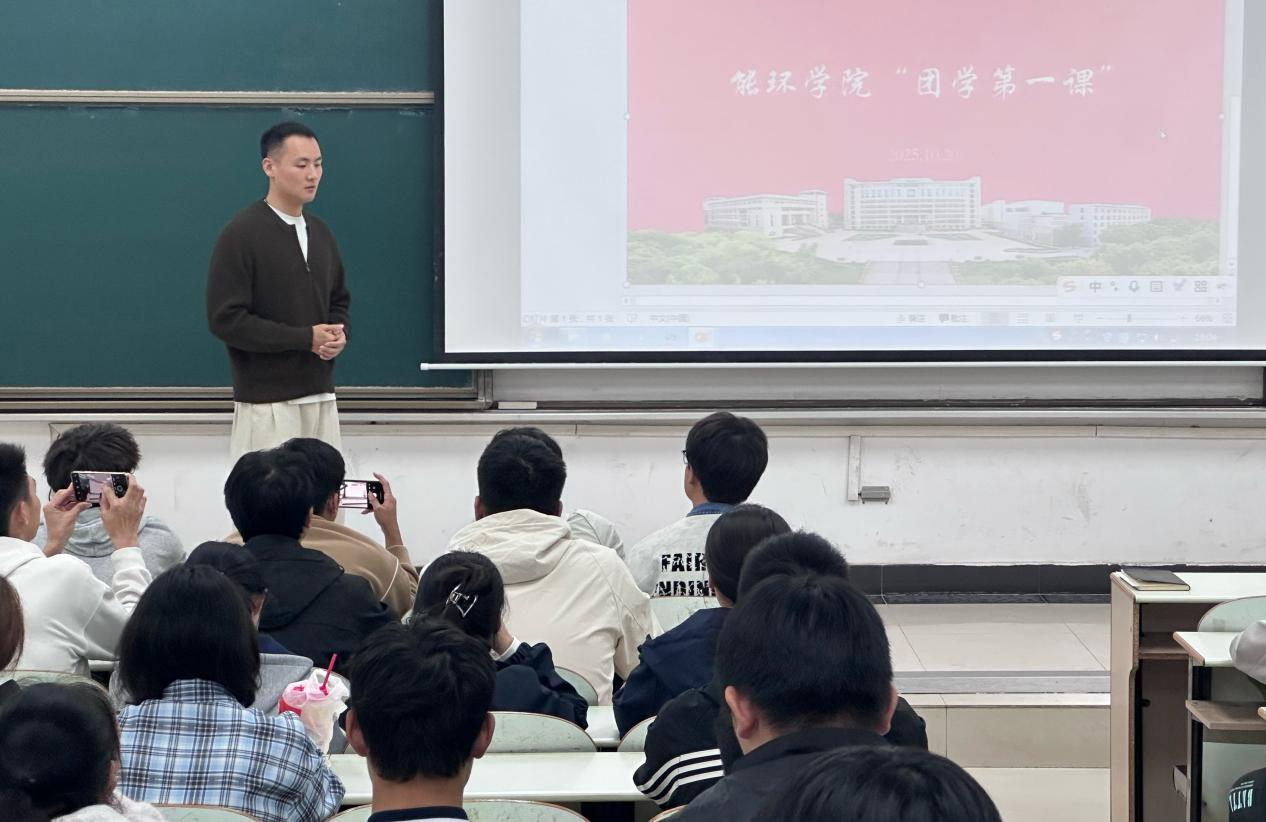 2025年10月20日,能源与环境学院在教三南301举办了面向2025级新生的“团学活动第一课”。本次活动由学院团委书记沈厚发主讲,围绕团员担当、团学组织架构与第二课堂实践等内容展开,为新生们上了一堂富有思想性、实践性和号召力的团学启蒙课。