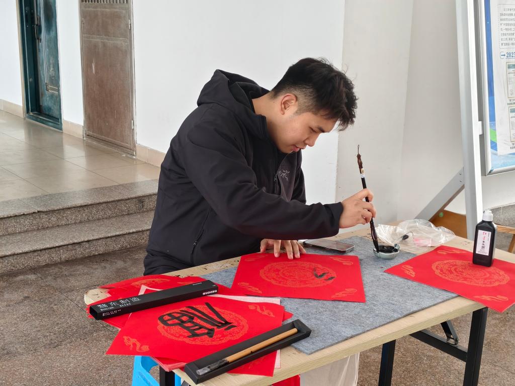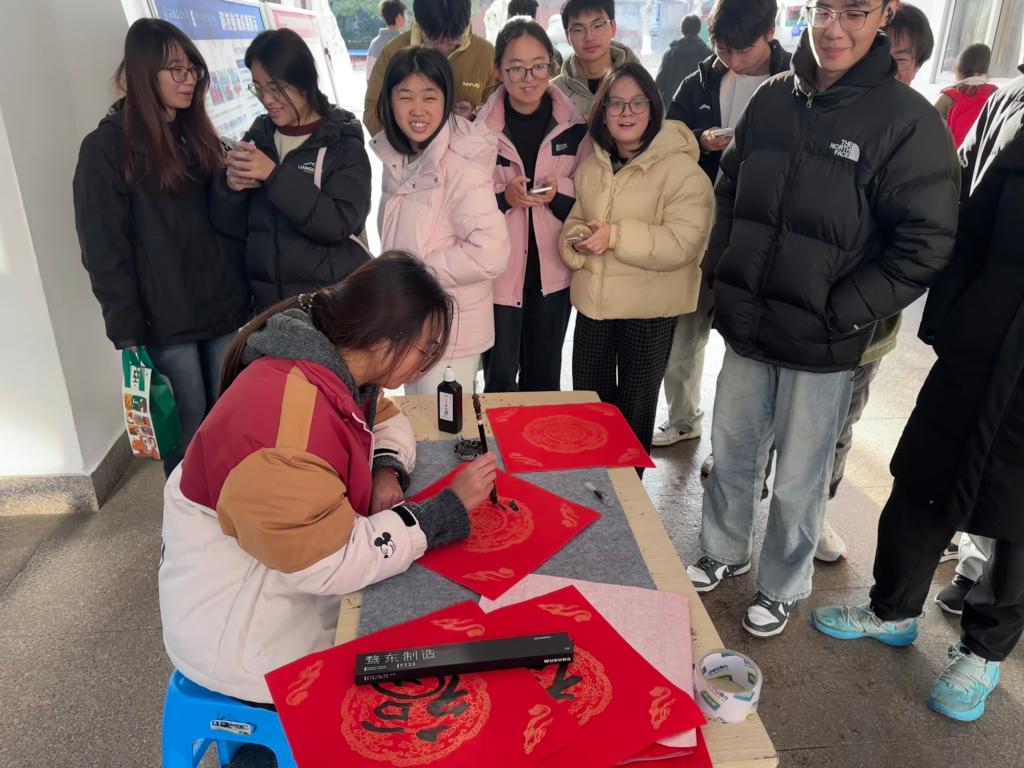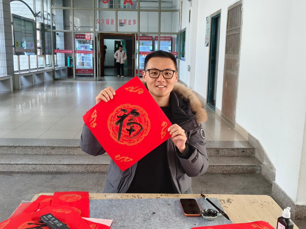 活动当天下午,5A楼下笔墨飘香,喜气洋洋。学院辅导员老师与学生代表共同执笔,红纸铺展,挥毫泼墨,一笔一划认真书写着新春的“福”字和寓意吉祥的对联。现场吸引了众多师生驻足观看、积极参与。一个个苍劲有力或娟秀清新的“福”字,一幅幅承载着美好祝愿的春联,在师生手中传递,不仅送出了真挚的新春祝福,更传递了学院对学子们深深的关爱与温暖。同学们接过这份特别的“年礼”,脸上洋溢着喜悦的笑容,纷纷表示感受到了浓厚的“家”的温情和节日气息。