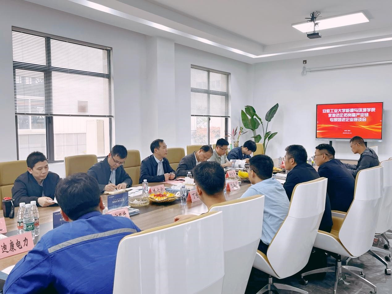 11日下午,凤杰一行首先来到海澄水务科技集团有限公司,与海澄水务科技集团有限公司、东方日升(安徽)新能源有限公司、安徽迪康电力科技有限公司和丽普汽车科技公司四家企业负责人进行产学研合作交流,并与部分校友开展座谈。交流会上,凤杰介绍了学校和学院的发展历程、学科优势以及在人才培养等方面所取得的成绩,表示海澄水务科技集团有限公司等四家公司业务范围与能源与环境学院的专业研究方向高度契合,具有很大的合作空间。凤杰感谢上述四家公司为安工大校友们提供的良好发展平台,希望今后能进一步加强合作,发挥各自优势,为国家的能源与环保事业做出新的更大贡献。