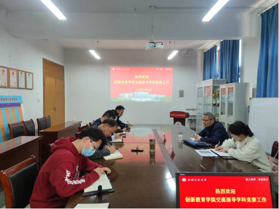 为促进大学生创新能力培养,4月12日上午,创新教育学院副院长严钟一行到能源与环境学院交流指导学科竞赛工作。能源与环境学院党委副书记、副院长谢文平,副院长盛广宏以及全体辅导员参会。