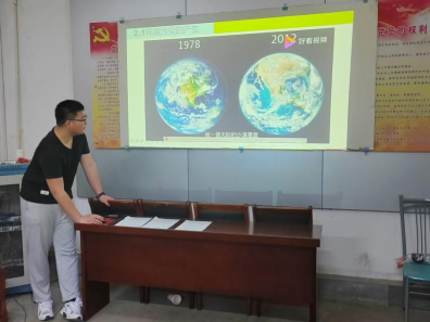 宣讲分为4个部分。“云支教”志愿者熊世成首先带领学生畅游天空、陆地和海洋,从蝴蝶、花草树木、小丑鱼的生存环境出发,告诉大家地球是人类赖以生存的唯一家园。随后讲述日益凸显的空气污染、废水排放、乱砍滥伐等一系列环境问题,强调保护地球刻不容缓。接着,他依托绿野协会的特色活动,为孩子们讲解生活中如何做到“低碳出行,节能减排”。最后,研支团成员用趣味问答的方式,加深同学们对世界地球日相关知识的记忆。