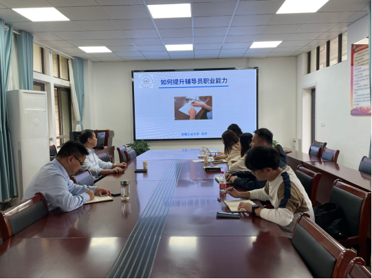 为进一步提升学院全体辅导员的学生工作素质能力,进一步加强学院辅导员队伍建设,10月9日,能源与环境学院组织召开辅导员素质能力提升专题培训报告会。全体辅导员参会,凤杰老师以“如何提升辅导员职业能力”为题作了专题培训,院党委副书记、副院长卫军帅主持会议。
